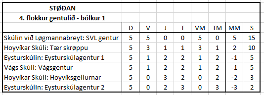 Hjá gentunum í 4. flokki vunnu SVL gentur frá Skúlanum við Løgmannabreyt. Hesi eru komin í finaluumfarið hjá gentum í 4. flokki: