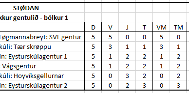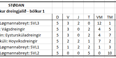 Úrslitið av dreingjabólkinum í 4. flokki varð sum víst í myndini. Og merkir hetta, at hesi fýra liðini eru komin víðari til finaluumfarið