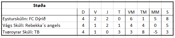 Í 10. flokki hjá dreingjum vunnu FC Dýrið á NámX í Eysturskúlanum og Rebekka’s Angels í Vágs Skúla. Hesi bæði liðini spæla so finaluna tórsdagin 2. mai 2019.