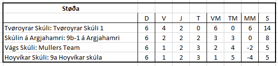 Hjá blandaðum liðum í 9. flokki eru fýra lið komin víðari til finaluumfar við hálvfinalu og finalu 2. mai 2019.