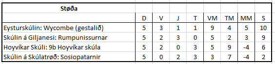 Wycombe á NámX á Eysturskúlanum ganga í 10. flokki og spældu við 9. flokki sum gestalið. Wycombe vinnur sostatt eisini bólkin hjá blandaðum liðum í 10. flokki.
