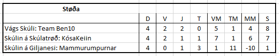 9. flokkur dreingir: Team Ben10 hjá Vágs Skúla og Kósakeiin á Skúlanum á Skúlatrøð spæla finaluna 2. mai.